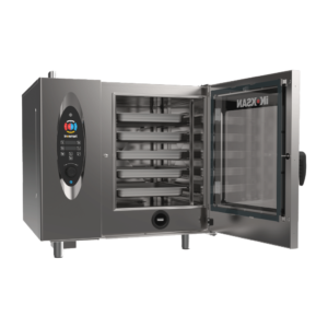 Kompakt ve Güçlü: Mutfakta az yer kaplayan tasarımıyla 10 adet GN 1/1 tepsi kapasitesini birleştirerek yüksek üretim hacmi sunar.
