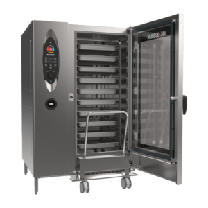 • Maksimum Üretim Kapasitesi: 40 adet GN 1/1 veya 20 adet GN 2/1 tepsi kapasitesi ile tek seferde yüzlerce porsiyonu aynı kalitede pişirme gücü.